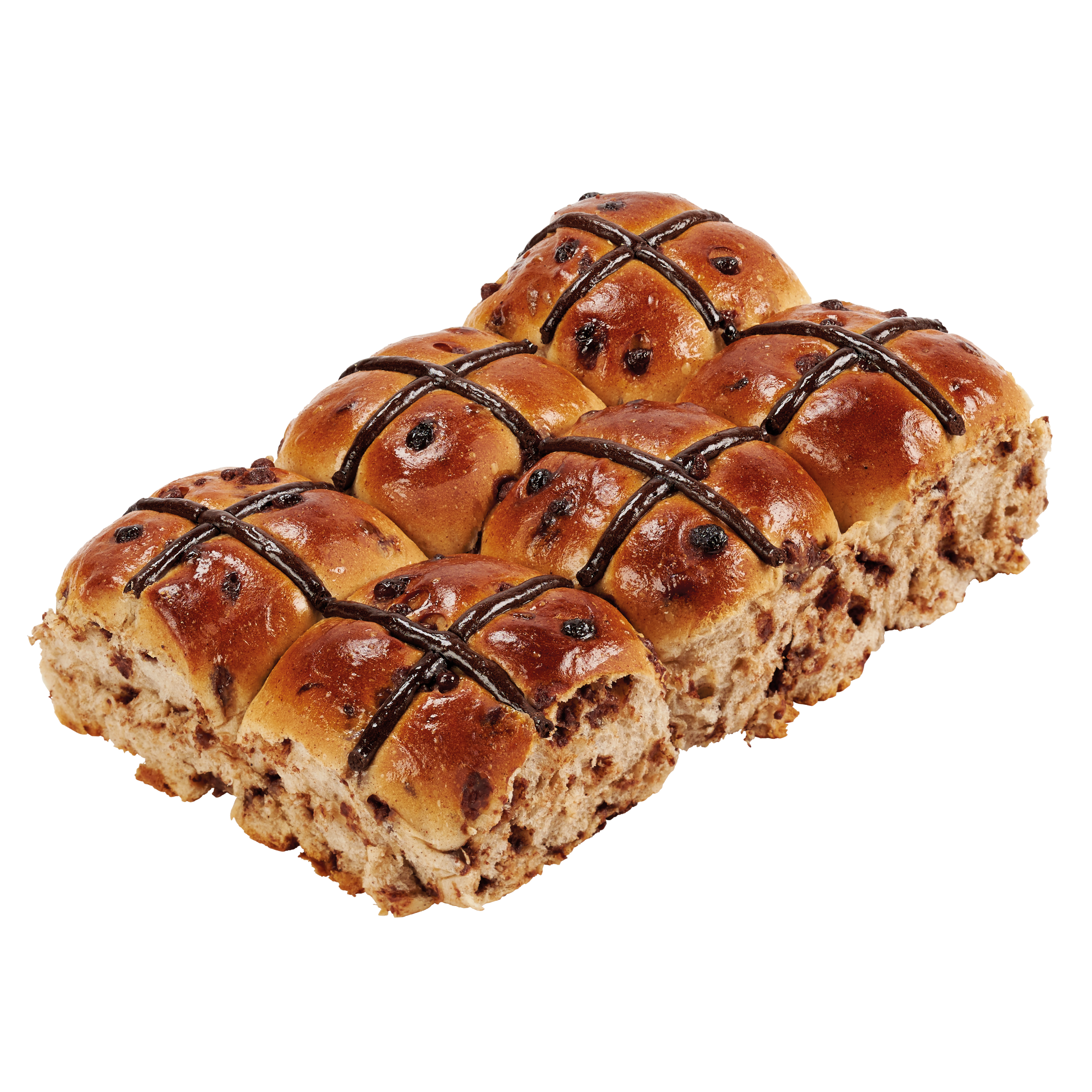 Indulge in our Mocha Hot Cross Bun — coffee notes, full of choc chips and all the cozy vibes for a perfect treat.